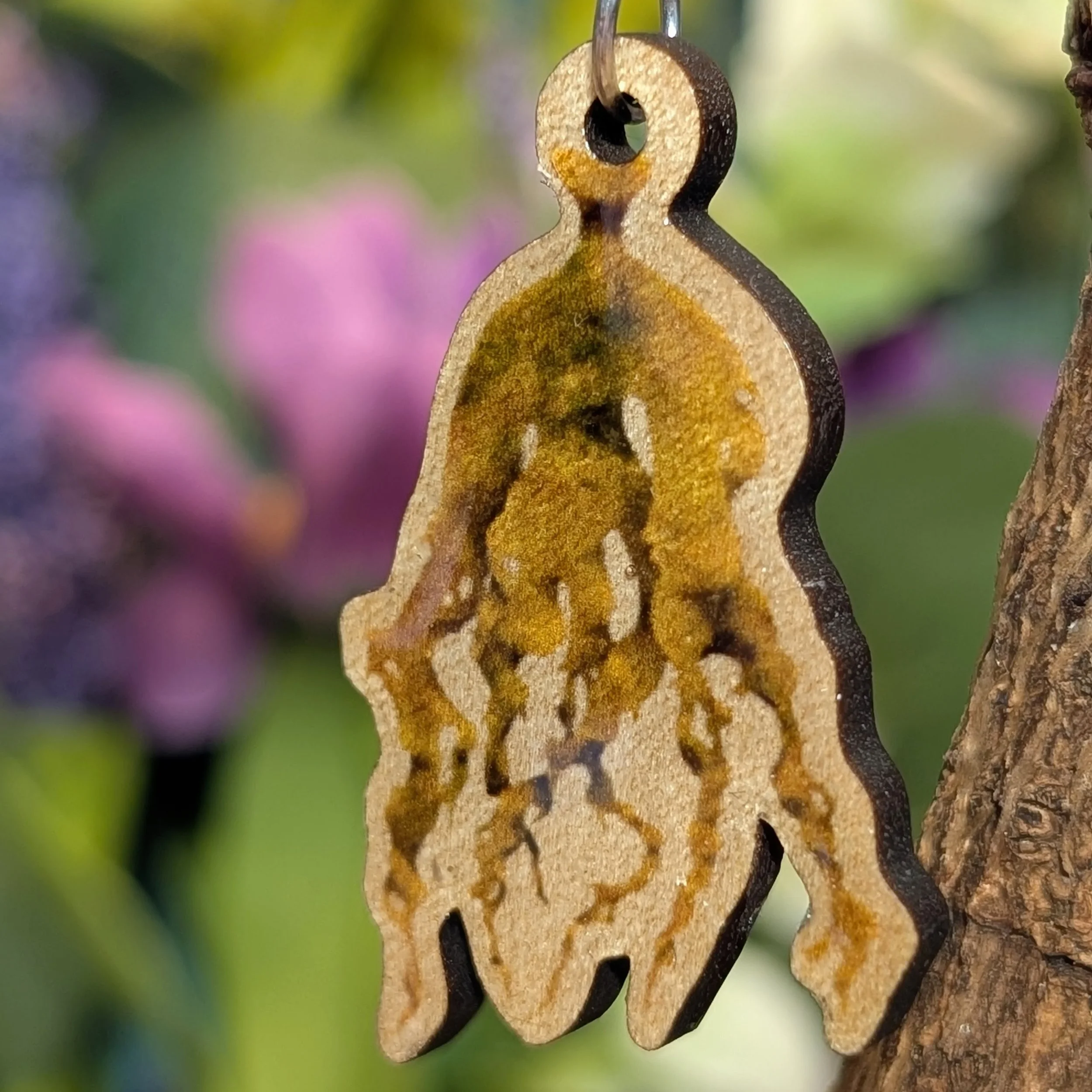 (The example earrings shown are made with Huon Pine. As they are pieces of handmade art, each pair of earrings will be unique due to differences in wood type, wood grain, and the handmaking process.)